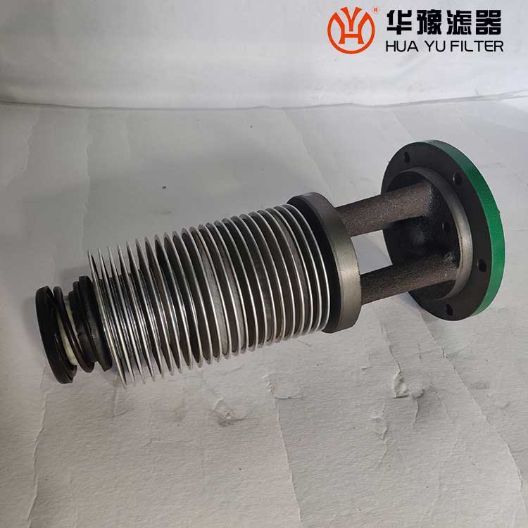 每一濾芯組件由濾器蓋、濾芯套筒、濾片及濾片圈等組成,濾器蓋頂部裝有放氣閥,供排出濾器內腔的空氣用。 濾片套在濾芯套筒上,是濾器的主要過濾元件,由濾網(wǎng),支承網(wǎng)及波紋隔盤等組成,濾網(wǎng)的網(wǎng)目數(shù)由用戶根據(jù)需要選用。轉換閥體是由鑄鋁鋁合金制成的椎體,與閥孔研磨配合,閥體上鑄有上下兩油道孔,上油道孔一端通濾芯上方油腔,一段通濾器出口,下油道孔一段通濾芯腔,一段通濾器進口,當轉換閥迅速從一極限位置轉至另一極限位置時,閥體將一濾芯腔的通路關閉,而將另一濾芯腔的通路打開,此時,壓力油從濾器進口流入濾芯腔,經濾網(wǎng)過濾后的清潔油經上方油腔從出口流出,達到濾清油液的目的。轉換閥體軸端頭上的箭頭指向接通的濾芯腔的一邊。